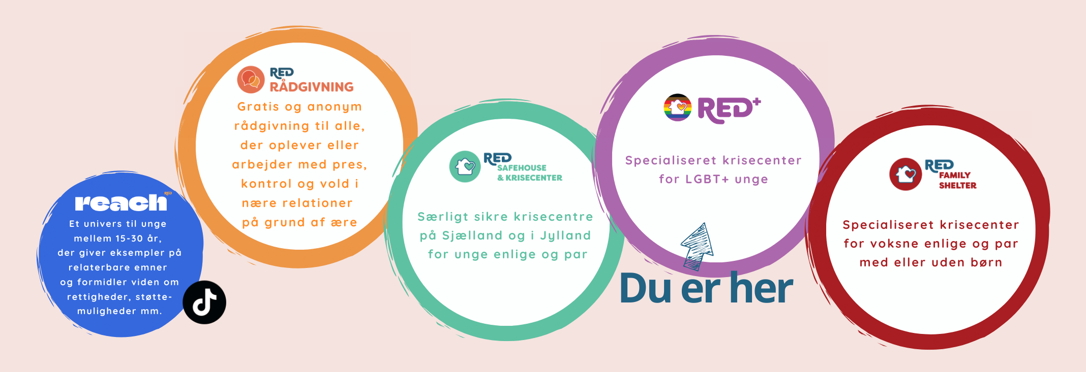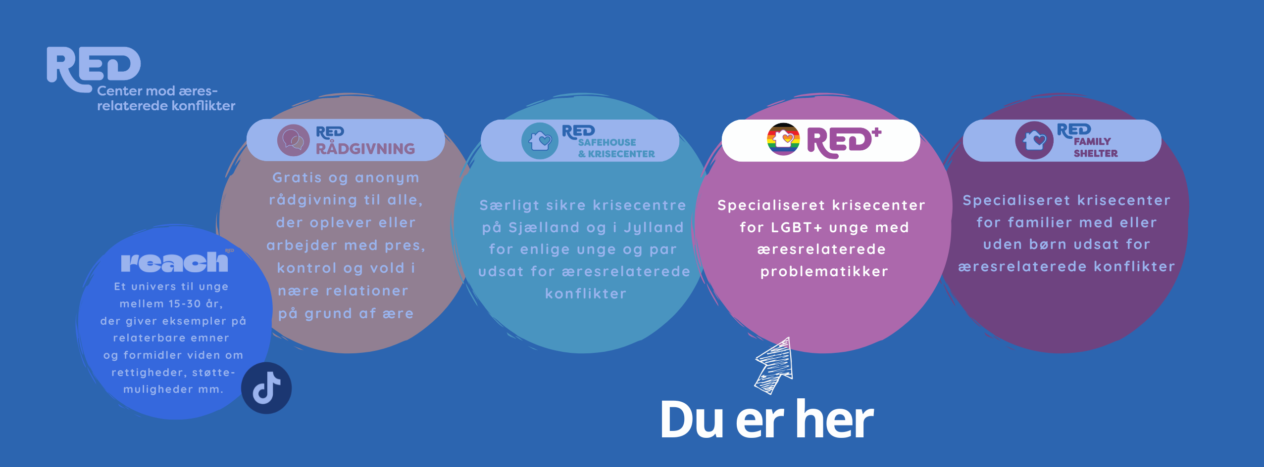 RED+ er et krisecenter for LGBT+ unge med æresmotiverede problematikker. Det er for alle køn i aldersgruppen 16-30 år.